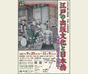 - Juzaburo Tsutaya and its surroundings - September 25 (Thu) - November 9 (Sun), 2025Introducing the publishing culture of Edo, which flourished in the Nihonbashi area, centered on the first Juzaburo Tsutaya. A gallery talk by cultural property investigators will also be held during the period!