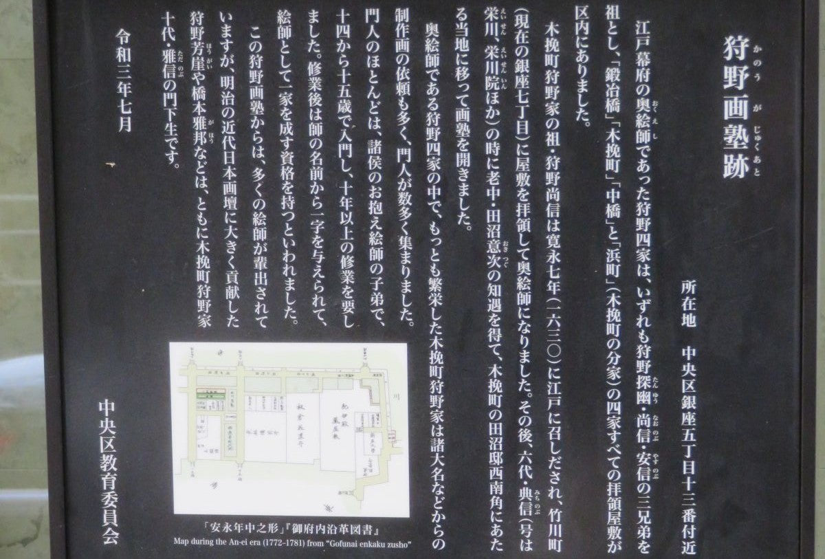 This is the place where Norinobu Kano, a painter who Okitsugu, moved to this area on the southwest corner of Tanuma's residence and opened a painting school. The Kano family of the Kano Yotsuya Kano, who was a painter in Edo shogunate.