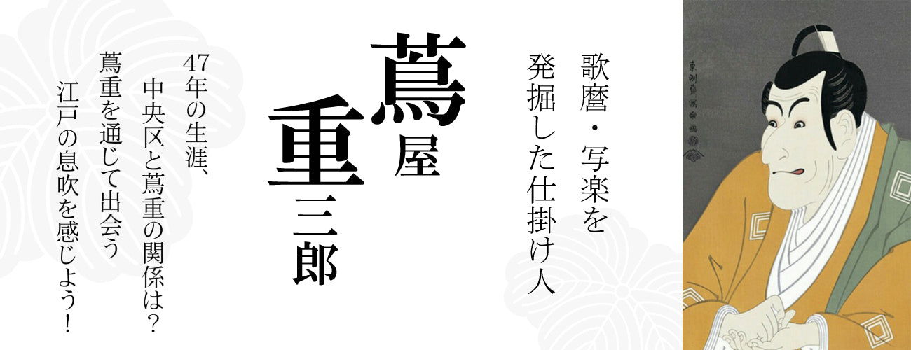 Juzaburo Tsutaya (1750-1797) was a publisher (printer) of the Edo period and one of the leading figures of Edo culture. He opened a bookstore near Daimon in Shin-Yoshihara. In 1783, he moved to this area and opened Koshodo, a local wholesaler dealing with stylish books and ukiyo-e, etc. He published works by painters such as Hokusai, Utamaro, and Sharaku, as well as works by playwrights such as Kyoden Santo and Nanpo Ota.