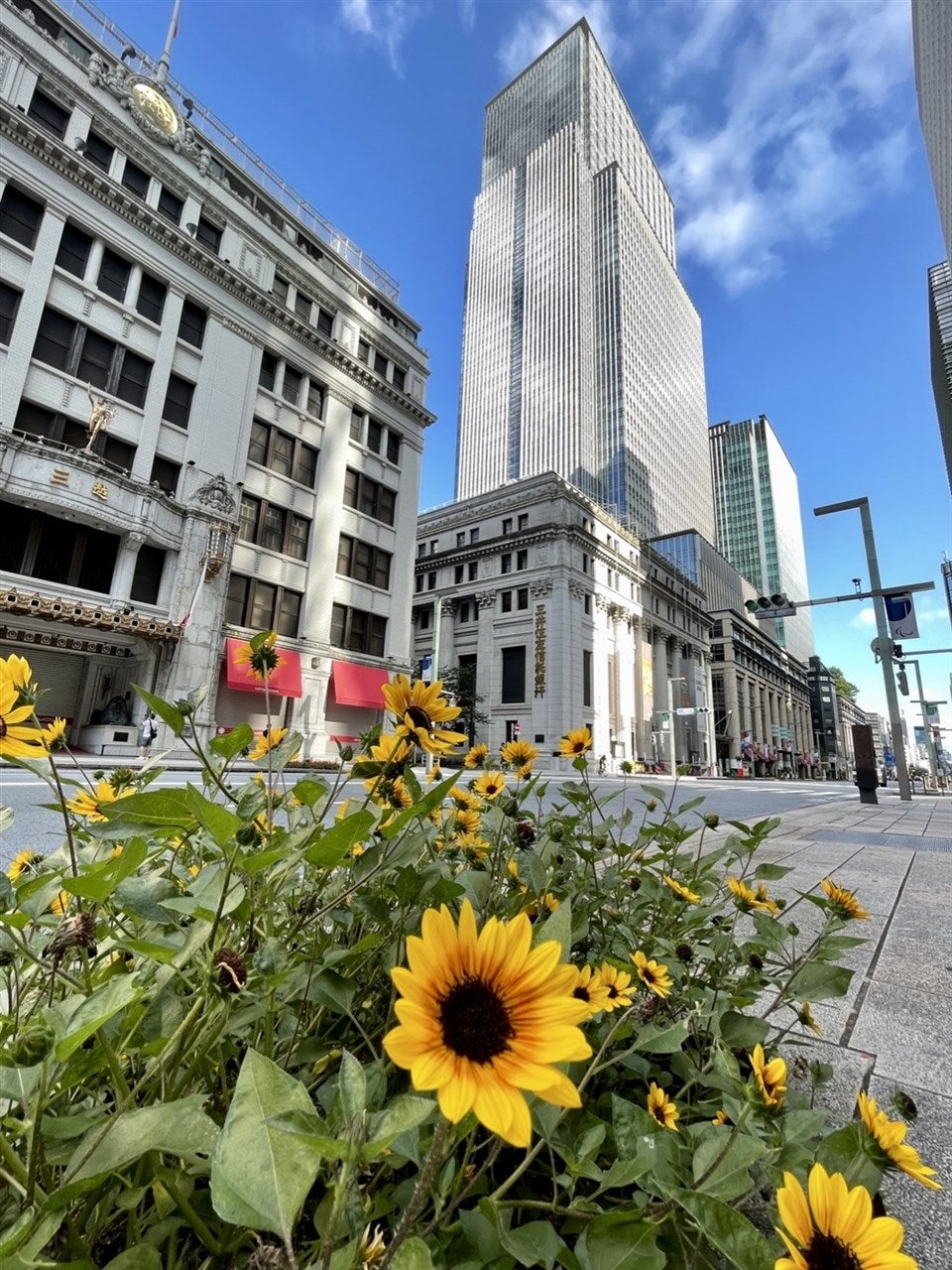 I love to walk around Nihonbashi. In front of Nihonbashi Mitsukoshi Main Store, flowers that feel the season are planted on the sidewalk, so you can enjoy spring, summer, autumn and winter.