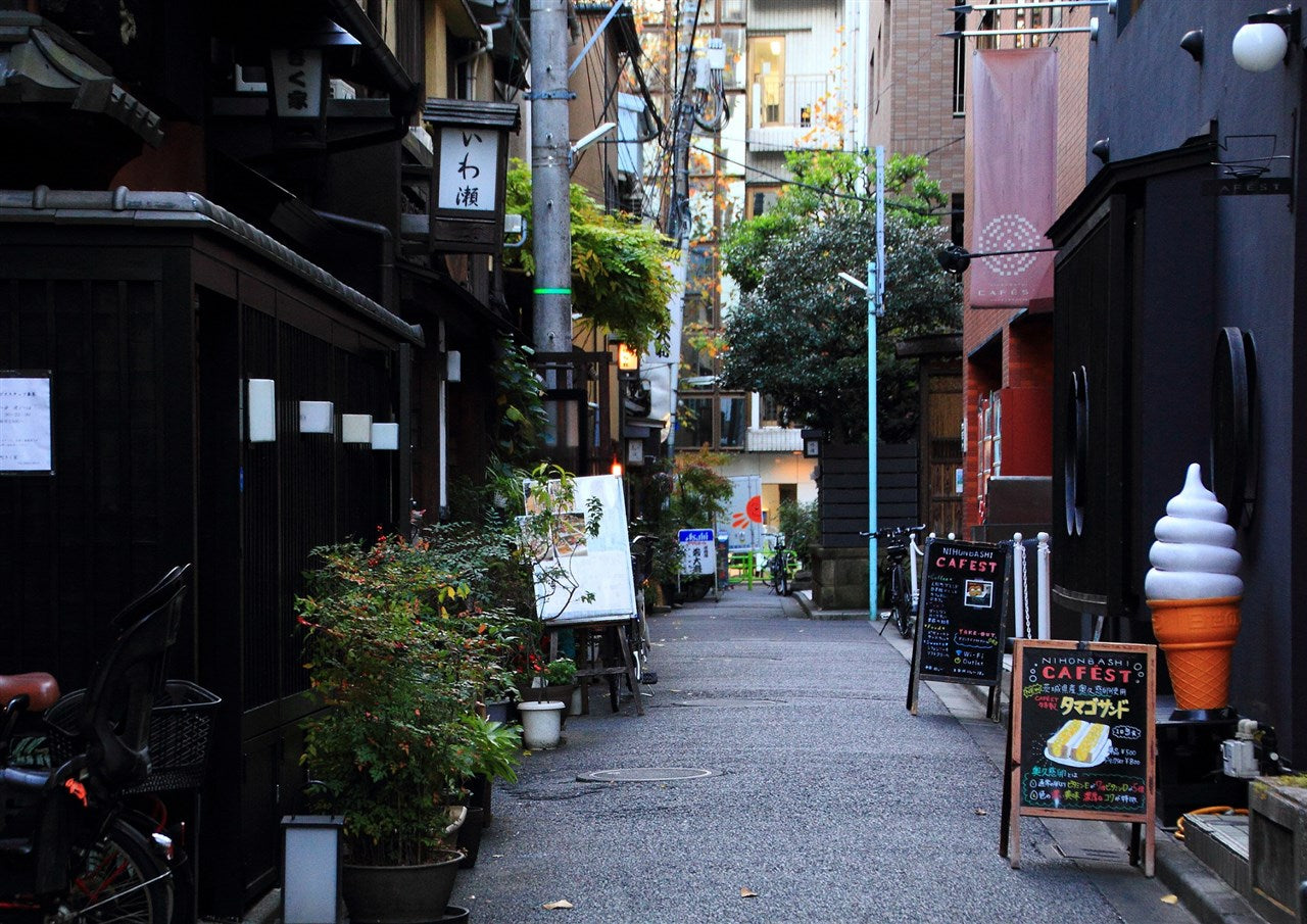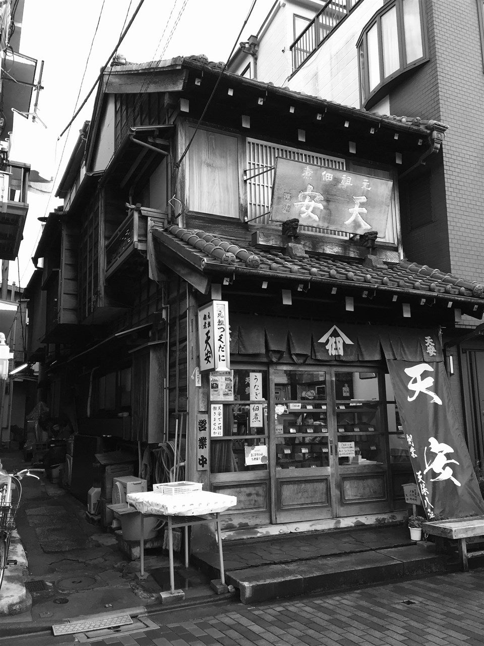 I loved the atmosphere of the city around Ningyocho for a long time, and I sometimes visited it. One day at dusk, I left amazake Yokocho, crossed Ningyocho-dori St., and looked into the narrow road beside Okanonji Temple. I felt the atmosphere of Ningyocho.